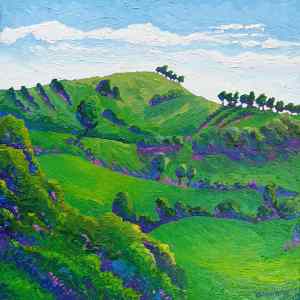 Maleny is a beautiful town in the Sunshine coast hinterland. rolling hills and majestic views, the land is green from recent rains. Thick impasto oil paint is applied in an expressive style to highlight the beauty of this environment.